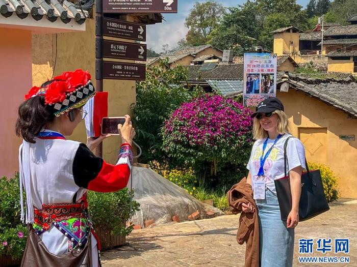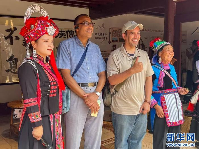 9月8日,嘉宾们来到弥勒市可邑小镇景区,在阿细跳月传习点深入了解国家级非物质文化遗产代表性项目彝族三弦舞——阿细跳月。据介绍,彝族三弦舞是彝族人民代代相传的一种民间舞蹈,流传于阿细彝区的三弦舞称“阿细跳月”,在阿细语中称为“嘎斯比”,意为“欢乐跳”。