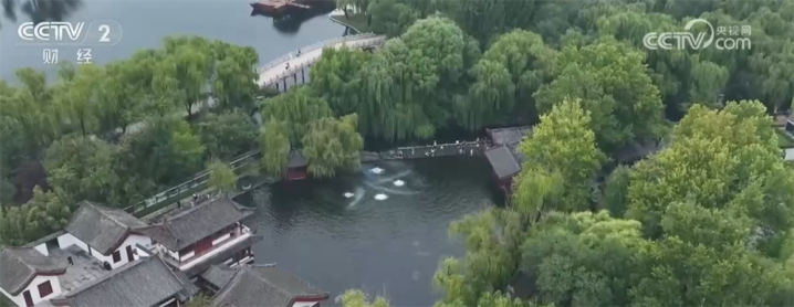 央视网消息:近期雨水充沛,位于山东济南章丘区的百脉泉迎来了丰水期,泉水群中的墨泉汹涌喷发、水势浩大,吸引了大量游客前来拍照打卡。