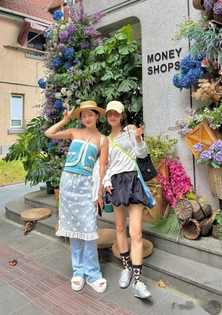 夏露妻子和倪妮约起来了, 露姐大双眼皮好漂亮, 颜值气质一点不输