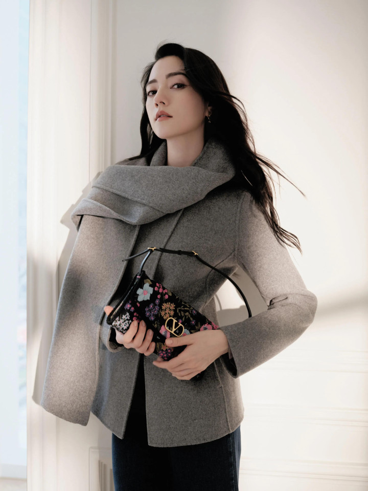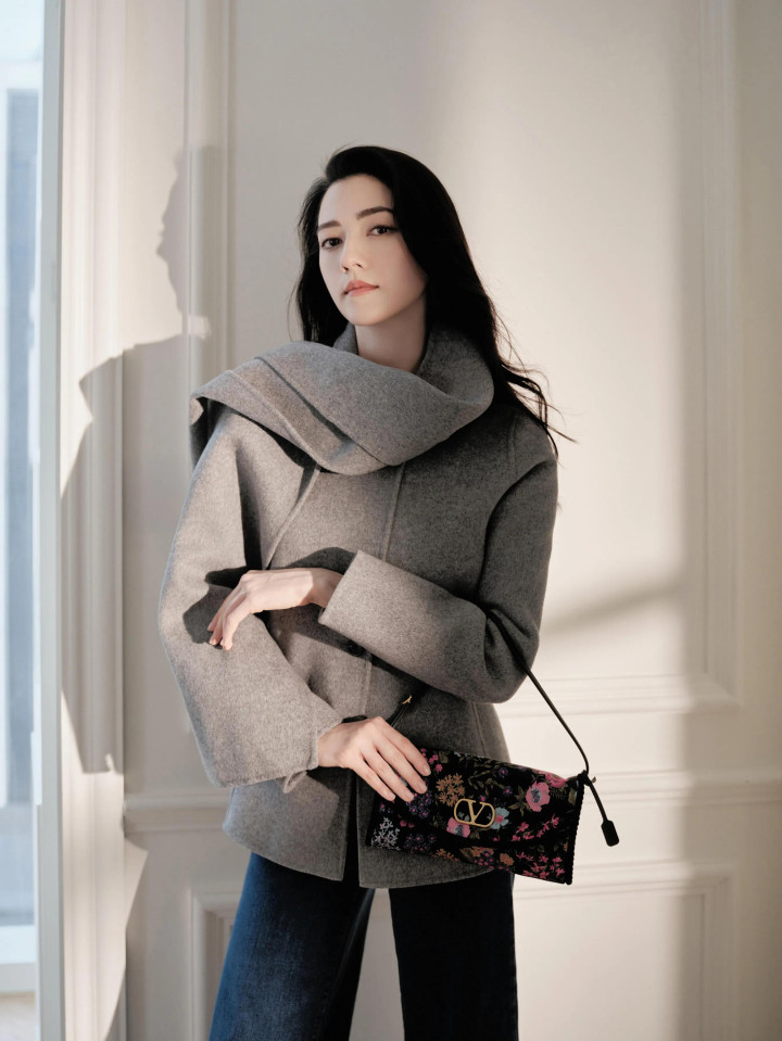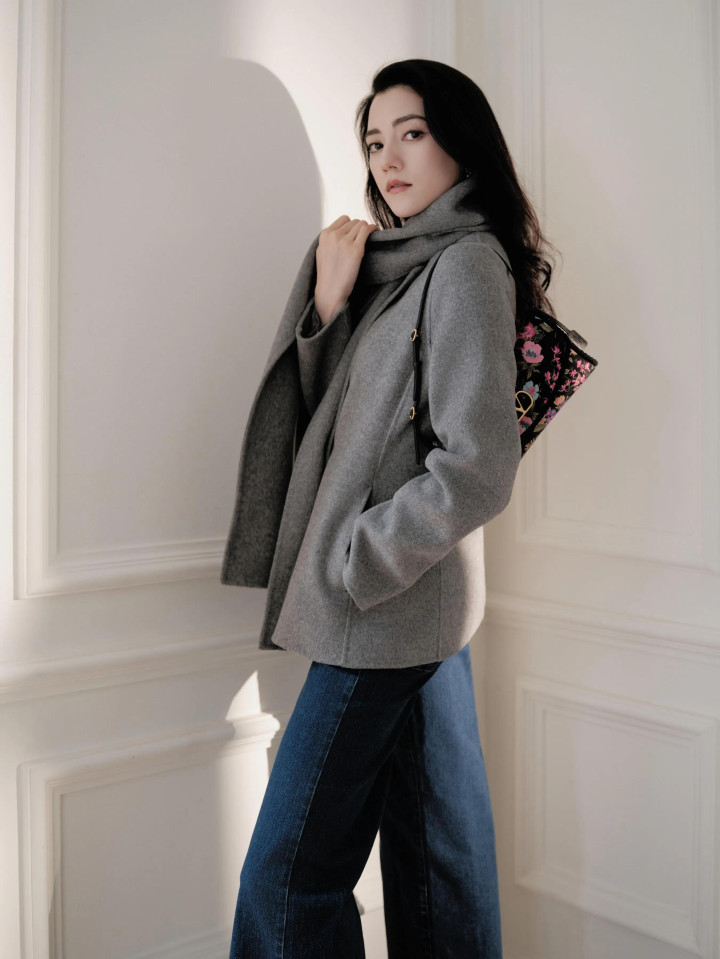 娜然很喜欢穿灰色基础款大衣,她用Valentino新款花卉包搭配这套灰色大衣很时髦,她的这张脸穿什么都好看。