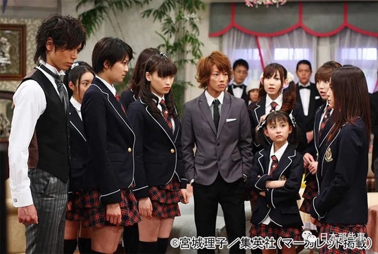 在《我的帅管家》里扮演大小姐miruku,(水岛宏、荣仓奈奈、大政绚、佐藤健,大家都好青涩↓