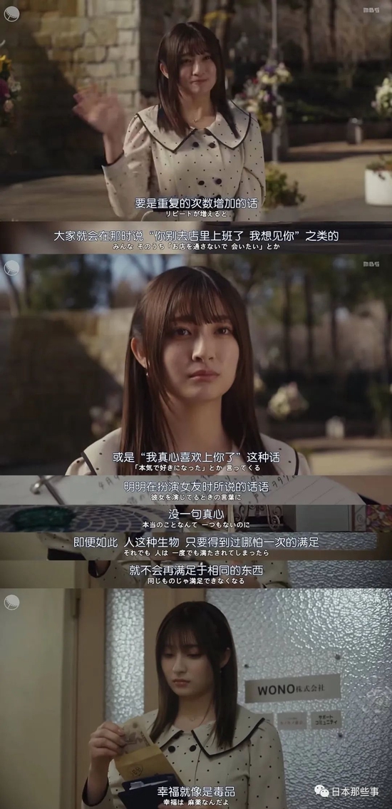 明明自己只是个按时收费的“出租女友”,所说的话和塑造的形象都是服务的一部分,但为什么大家都会盲目地相信这些谎言、沉溺在虚假的幸福里呢?